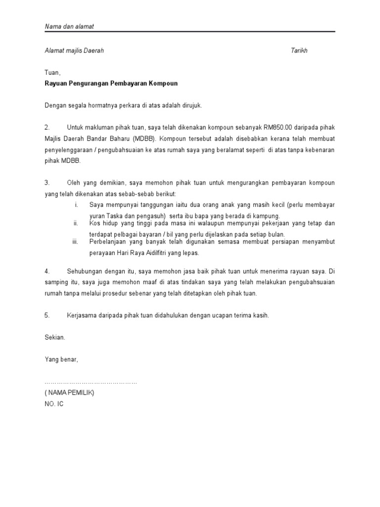 Surat rayuan pengurangan kompaun lhdn kenapa pentadbiran dato seri najib denda pegawai kerajaan. Surat rayuan pengurangan cukai taksiran selangor r. Sayabertarikh 15 julai2016no kompaun 133235 atas kesalahan membiakkan serangga pembawa penyakit 2.